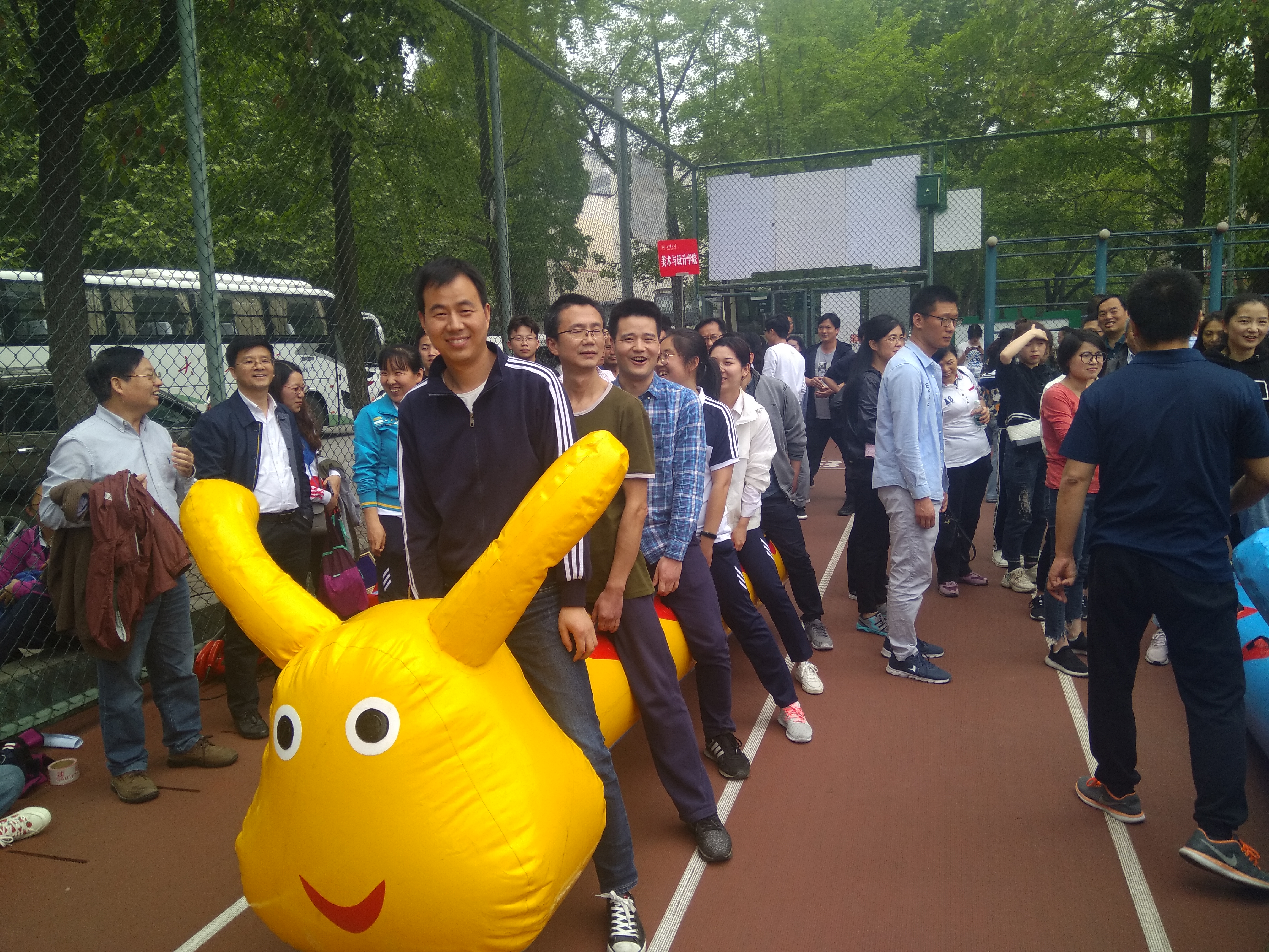 下午,教职工们的热情随着攀升的气温被点燃,运动场处处都是认真训练的队伍,到处都在“鼓动人心”。下午第一个项目毛毛虫比赛,我院6位大长腿美女帅哥摩拳擦掌,跃跃欲试,随着裁判的一声哨响,骑着道具“毛毛虫”的队员们如脱缰的野马,一路狂奔,由于太过兴奋,6名队员节奏被打乱,虽然获得小组第一名,但整体排名成绩不佳,获得三等奖。下午第二个项目趣味投篮,该项目难度系数高,趣味性强,我院参赛队员踊跃,人数过多,工会临时决定按照试投成绩选拔最优战队,经过选拔的12名参赛队员各个身怀绝技,第一个上场的唐祁峰不负众望,55中的到5分,其他队员在他的带领小稳扎稳打,最后取得第6名的成绩,获得二等奖。最后一个项目是鼓动人心,由院长栾道成,副院长丁士华领衔主演的大戏终于登场,随着放球手把圆圆的网球放入鼓面,小小的网球上下跳跃,16人小心翼翼、全神贯注、密切配合、跳动的频率越来越快,三分钟完成了283次有效跳动,获得小组第一名。但其他小组的队伍技术更好,配合更佳,成绩更优,最后学院在最后一项比赛中取得第六名的好成绩,获得二等奖。