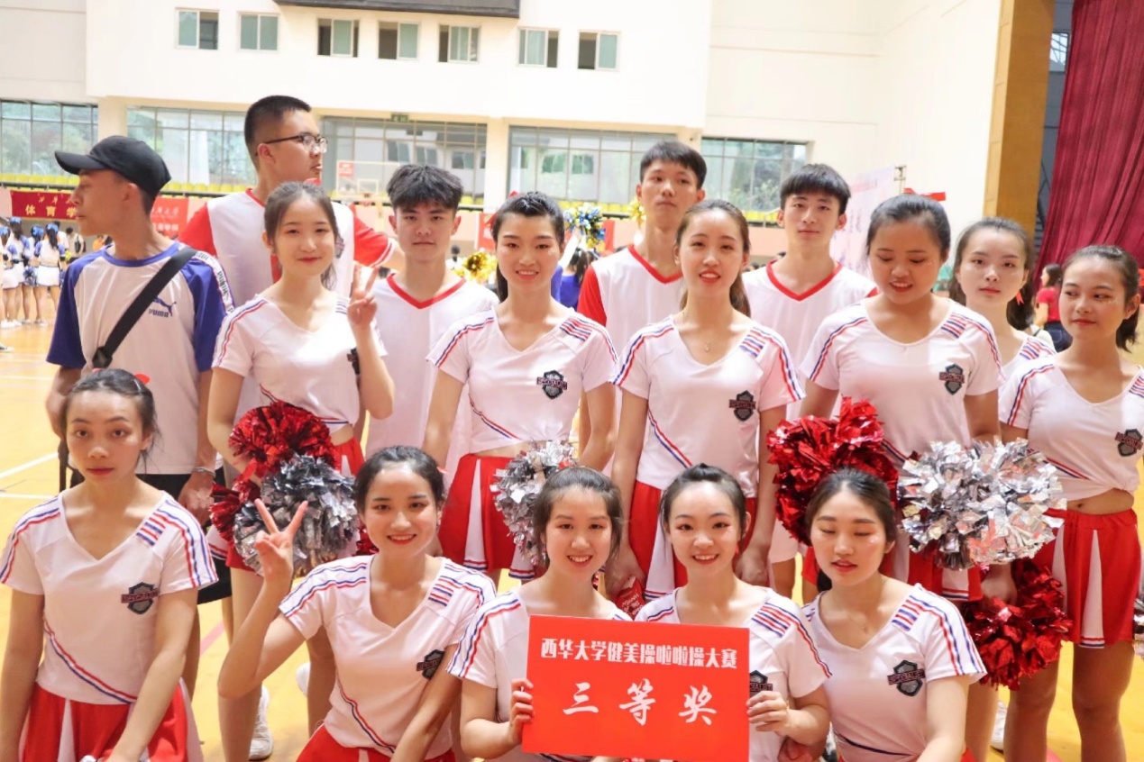 我院参赛队伍经过一个多月的艰苦训练,充分展示了当代大学生不怕苦不怕累顽强拼搏的精神。在训练中,队员们严格要求自己并帮助队友完成动作的展示,私底下的她们也更像亲人一样。啦啦操队组成了一个大家庭,队友之间互帮互助,不分你我,不知不觉中,都把彼此放在心中重要的位置。他们的坚持与努力,终于得到了回报。他们在比赛中大放异彩,一鸣惊人,赢得了众多评审的极高的认同与肯定,获得了三等奖的好成绩。至此,大赛在欢声笑语中圆满落下帷幕。