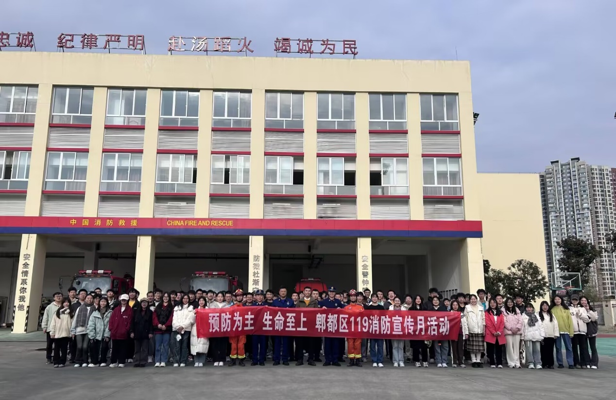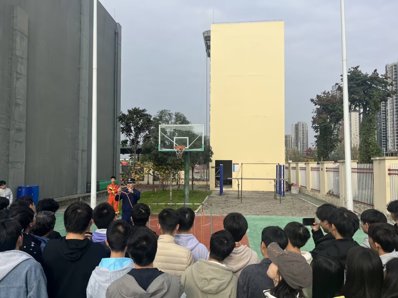 学生工作办公室主任雷云中老师带队步行前往红光街道消防站,首先,消防员向师生展示并讲解各种消防器的用途及使用方法,随后,在消防员的指导下,师生体验了部分消防器材的操作。消防员还带领师生参观了消防站生活区域、工作区域,讲述了消防员的日常训练要求,师生们纷纷对消防员们表达由衷的敬佩之情。接着,消防员们向师生展示了徒手爬绳技术、滑轮牵拉技术以及绳结技术。参加活动的师生与消防员们进行愉快的交流,并合影留恋。