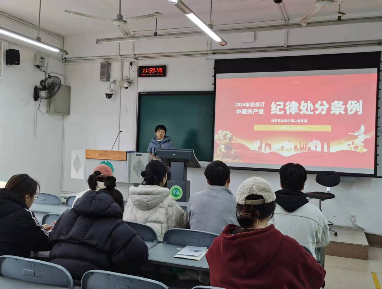 2024年1月8日,材料科学与工程学院材料系本科生第二党支部在5B-303开展学习贯彻《中国共产党纪律处分条例》主题党日活动。