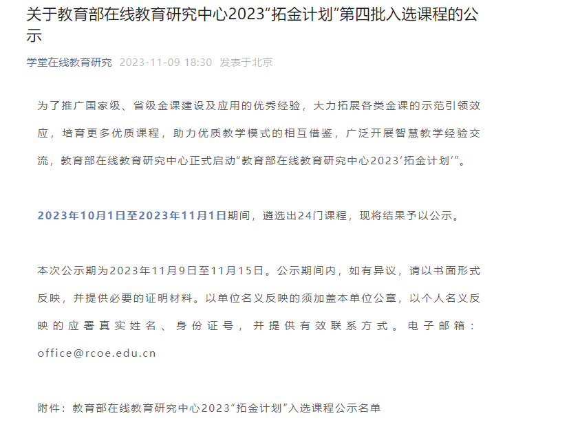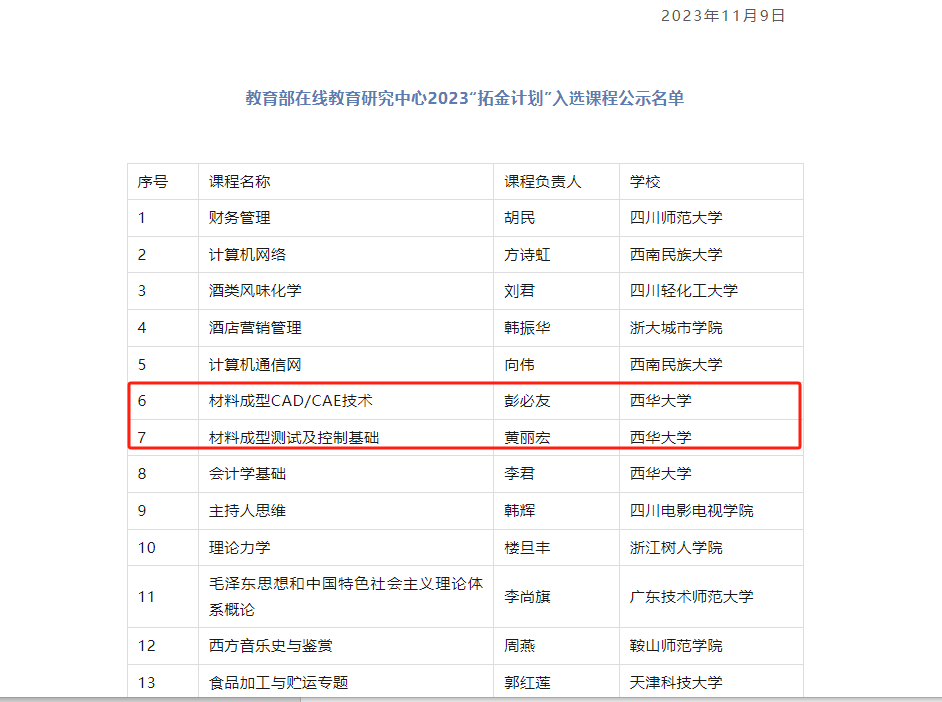 彭必友、黄丽宏课程入选教育部在线教育研究中心2023“拓金计划”