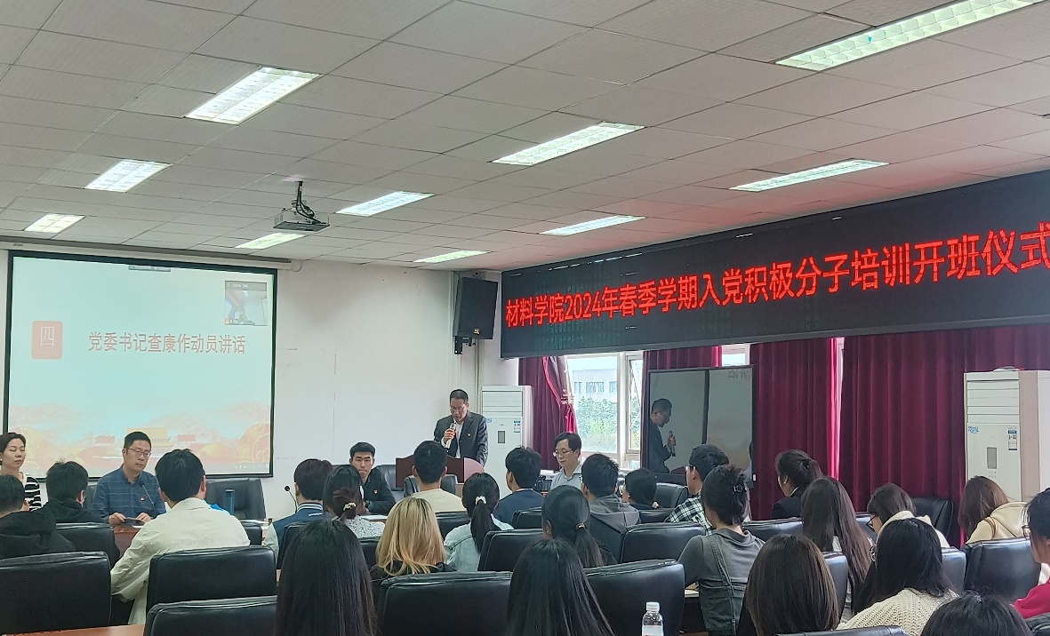春光熠熠,四野清明。春日的西华到处充满着生机与活力。3月30日上午,材料科学与工程学院党委在会议室5A427举行2024年春季学期入党积极分子培训开班仪式。学院党委书记查康、党委副书记马洪波、学工办主任雷云中、院团委书记许沛娟及红光校区全体参训学员参加了会议,学院宜宾校区所有参训学员在党支部书记周新宇、舒琦组织下在线参加了开班仪式。会议由学院党委委员、专职组织员周强主持。