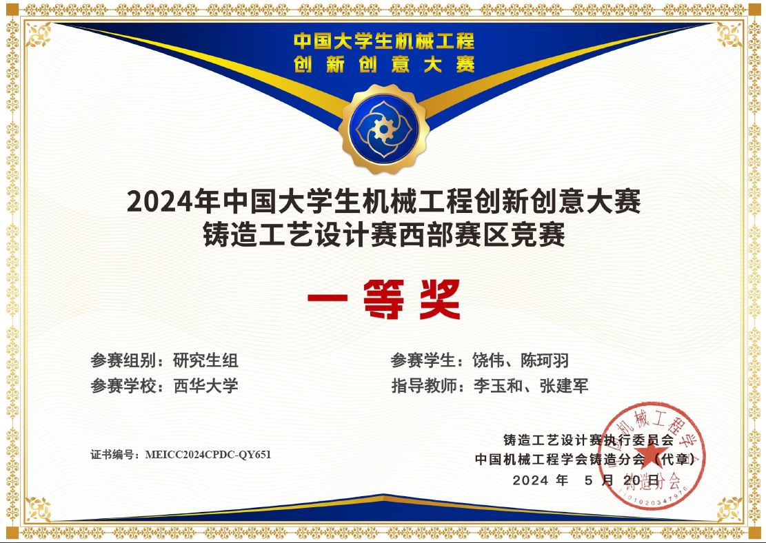 作为国家级赛事“中国大学生机械工程创新创意大赛”的分赛,铸造工艺设计赛的赛事水平及影响力不断提高。本次赛事共有132所参赛院校的1715份作品参赛,参赛学生共计5951名,经校内选拔赛,赛项执委会专家对参赛作品进行区域赛评审。经过激烈角逐,共评选出获奖作品741份,其中西部赛区一等奖作品54份,二等奖作品86份,三等奖作品18份。我校材料科学与工程学院李玉和、何汇川、万维财、梁孟霞、黄红键等老师指导的8组作品全部荣获一等奖。