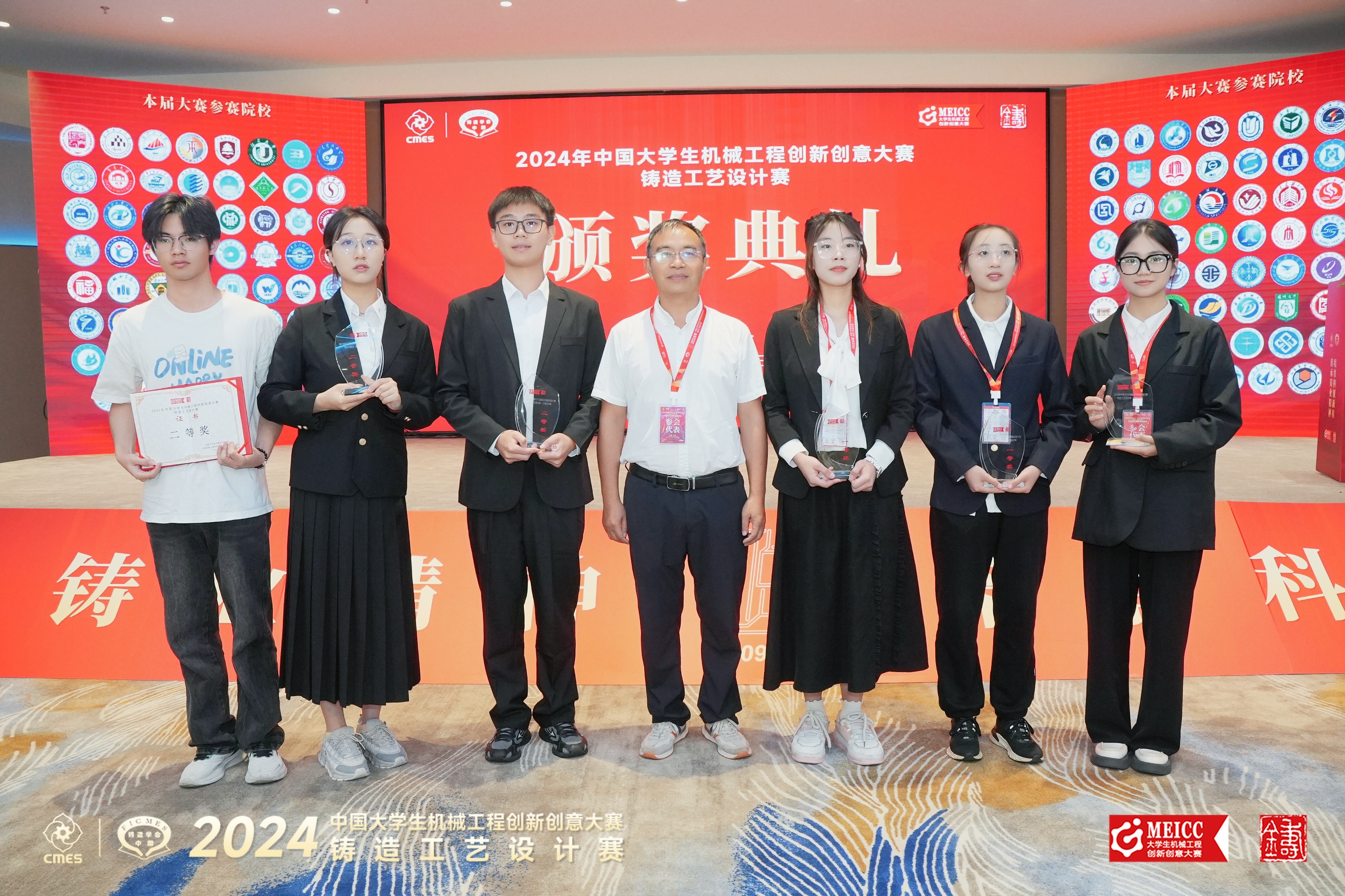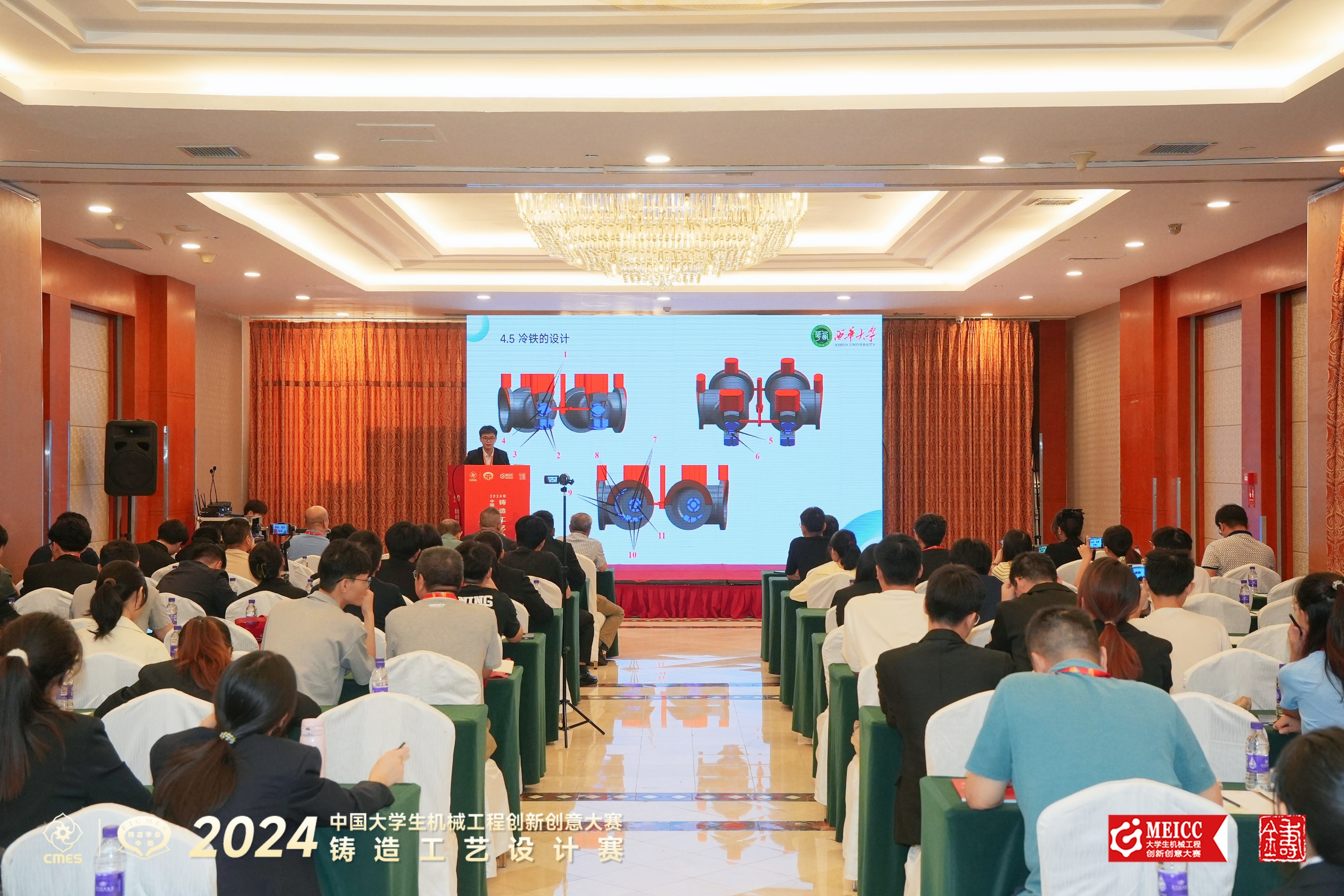 由中国机械工程学会主办,中国机械工程学会铸造分会承办的“2024年中国大学生机械工程创新创意大赛:铸造工艺设计赛”全国总决赛终评会议暨颁奖典礼于2024年7月30日~8月2日在辽宁省大连市举办。本届赛事从比赛赛制、规范参赛院校行为等方面予以进一步调整与优化,采用校内选拔赛、区域赛、全国总决赛三级赛制。本届赛事共有132所高校参赛,经校内选拔赛,赛项执委会专家对参赛作品进行区域赛评审,并推荐全国总决赛作品。由我校材料科学与工程学院李玉和、万维财、梁孟霞等老师指导的本科生组5个团队入围总决赛。全国总决赛终评由现场答辩和铸造知识竞赛两个环节组成;全国总决赛总成绩=全国总决赛初评成绩×20%+全国总决赛终评成绩×80%+铸造知识竞赛成绩。经过激烈角逐,我校材料成型及控制工程专业郑新梅团队、徐敏团队获得总决赛一等奖,周胜兵团队、赵袁团队、张迪团队获得二等奖。另外,胡志延团队获得本科生组三等奖,材料加工专业万源团队、饶伟团队获研究生组三等奖。我校今年参加此项赛事的8个团队全部获奖,这是我校参加该项赛事以来取得的最好成绩。
