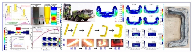 开展金属(粉末)材料高温/室温塑性加工过程流变(致密化)损伤的行为和机制研究,结合本构关系、微观组织演化和损伤断裂建模及二次开发等方法,进行金属(粉末)热/冷锻造、挤压、轧制、拉拔等塑性成形成性的数值模拟分析,为塑性加工工艺和模具的设计优化、产品的提质增效和技术改进提供理论支撑。