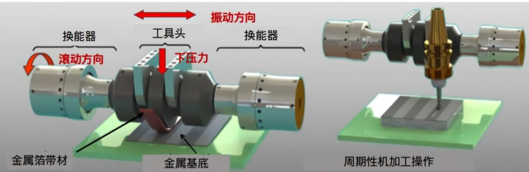 超声波金属增减材制造技术(UASM)是一种室温条件下即可开展的金属箔材固态层叠增材减材复合制造技术。UASM 技术将超声波金属滚焊与数控机床的铣削功能相结合,来实现金属增材制造及复杂结构加工。该技术通过在金属箔带材之间引入高频摩擦,造成金属界面间的剧烈塑性变形,从而带来界面间的微观组织演化进而形成金属材料间的固态冶金结合。与传统的高温金属增材制造技术相比,UASM 技术原材料易于制备,成形时间短,加工效率高,无需保护气体与高温高压等条件,其成形温度一般仅为金属熔点的25%~50%。 UASM 除了可以实现同种/异种金属间固结之外,还可以实现金属与聚合物、金属与碳纤维、金属与陶瓷等材料间的固结,开辟了金属基智能器件和复合材料等新的应用领域。
