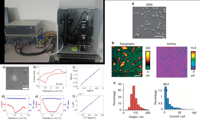 通过搭建扫描电化学探针测试系统,原位分析电极活性材料与电解液固液界面之间的电化学反应,明晰电极材料的反应热力学及动力学机制,为高性能电极材料的设计提供科学依据。