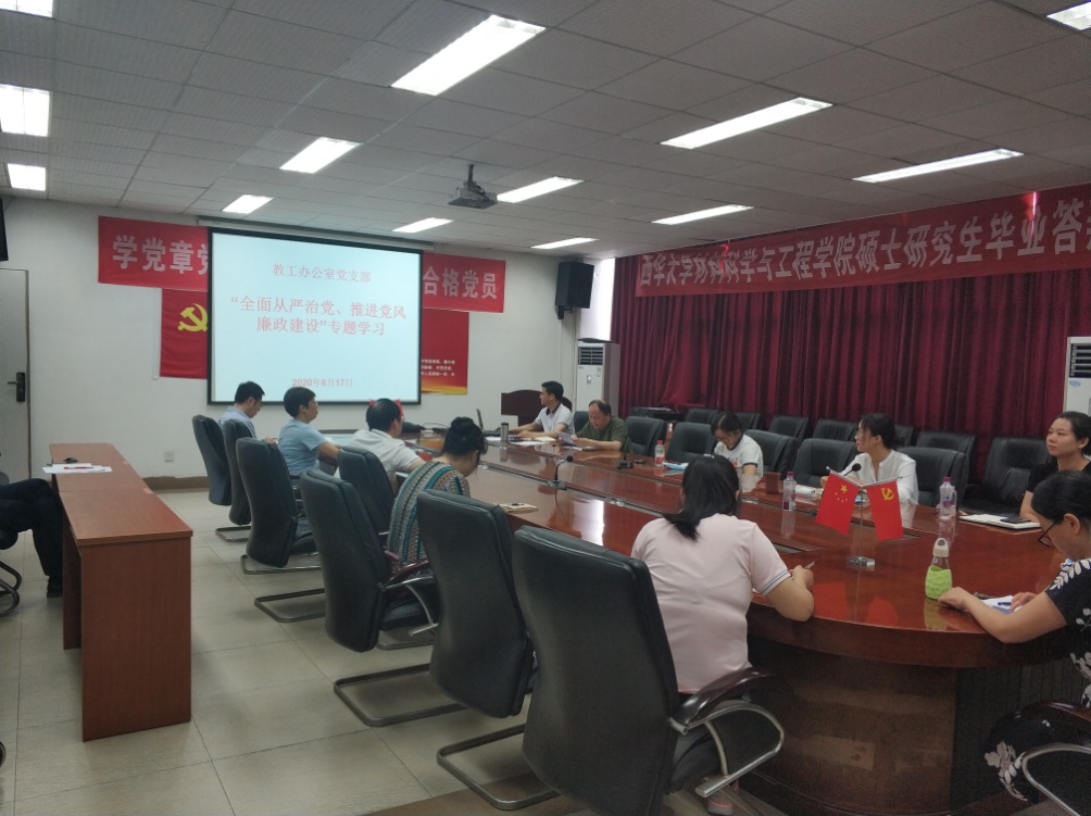 为深入推进全面从严治党和党风廉政建设,6月1日上午,材料科学与工程学院教工办公室党支部在5A427会议室召开“全面从严治党、推进党风廉政建设”专题学习会,会议由支部书记刘云强主持,教工办公室党支部全体成员参加。