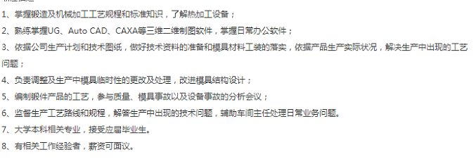招聘岗位1 :锻压技术工程师(材料成型)