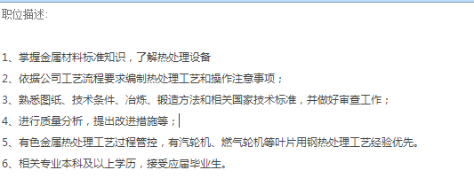 招聘岗位2 :热处理工程师(材料科学)