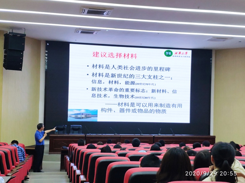 2020年9月29日晚,材料学院副院长金应荣教授在宜宾校区为18级专升本新生举行了一场专业教育会,全体18级专升本新生、部分17级学生参会。