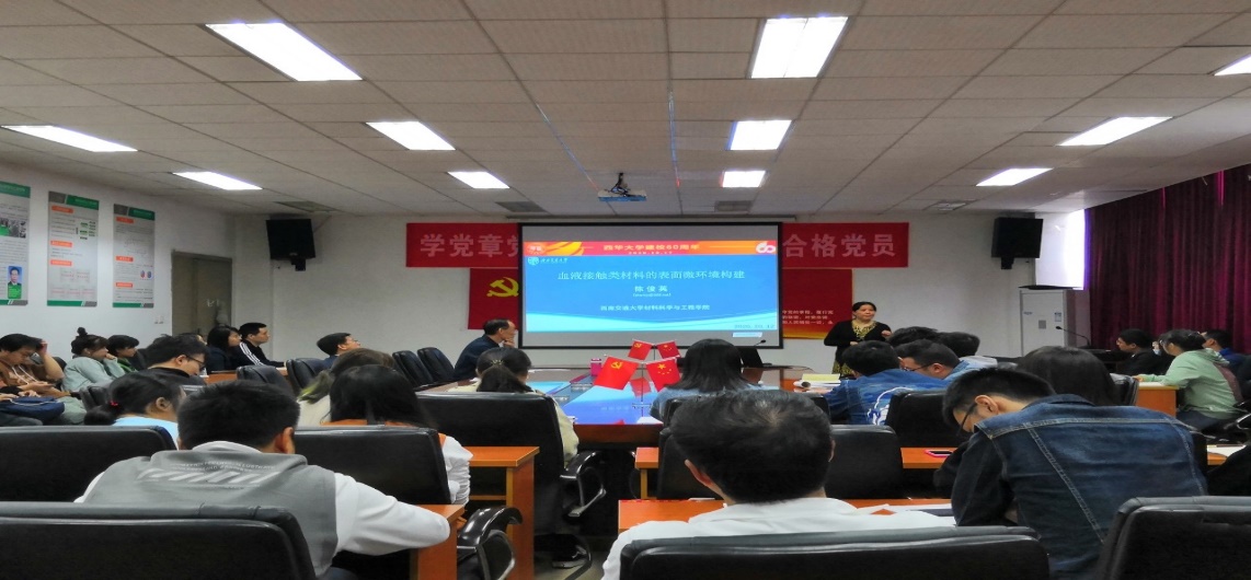 陈俊英教授以“血液接触类材料表面微环境构建”为题,从血液接触类材料面临的问题为切入点,对生物材料的研究现状、应用前景进行了简要介绍,结合“血液接触类材料表面微环境构建”的研究课题,重点介绍了血液接触类材料几种表面改性方法。她特别强调,从Ti-O表面的覆膜改性,到生物化修饰,再到构建表面生物功能信息化微环境,应当是层层深入,缺一不可的,只有实现多种功能的协同作用,才能得出问题的最优解。