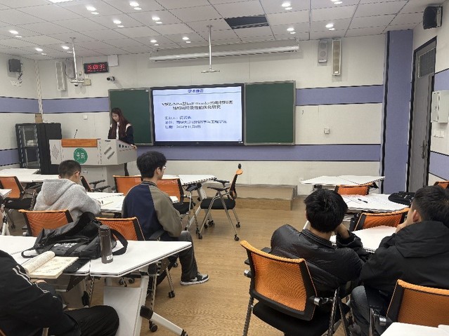 11月8日下午,在5B-302智慧教室,材料科学与工程学院开展学术报告会,由betway88西汉姆联材料学院闵若男博士给大家进行学业、学术交流。24级、23级研究生及部分教师参加会议,副院长陈宝书教授主持。