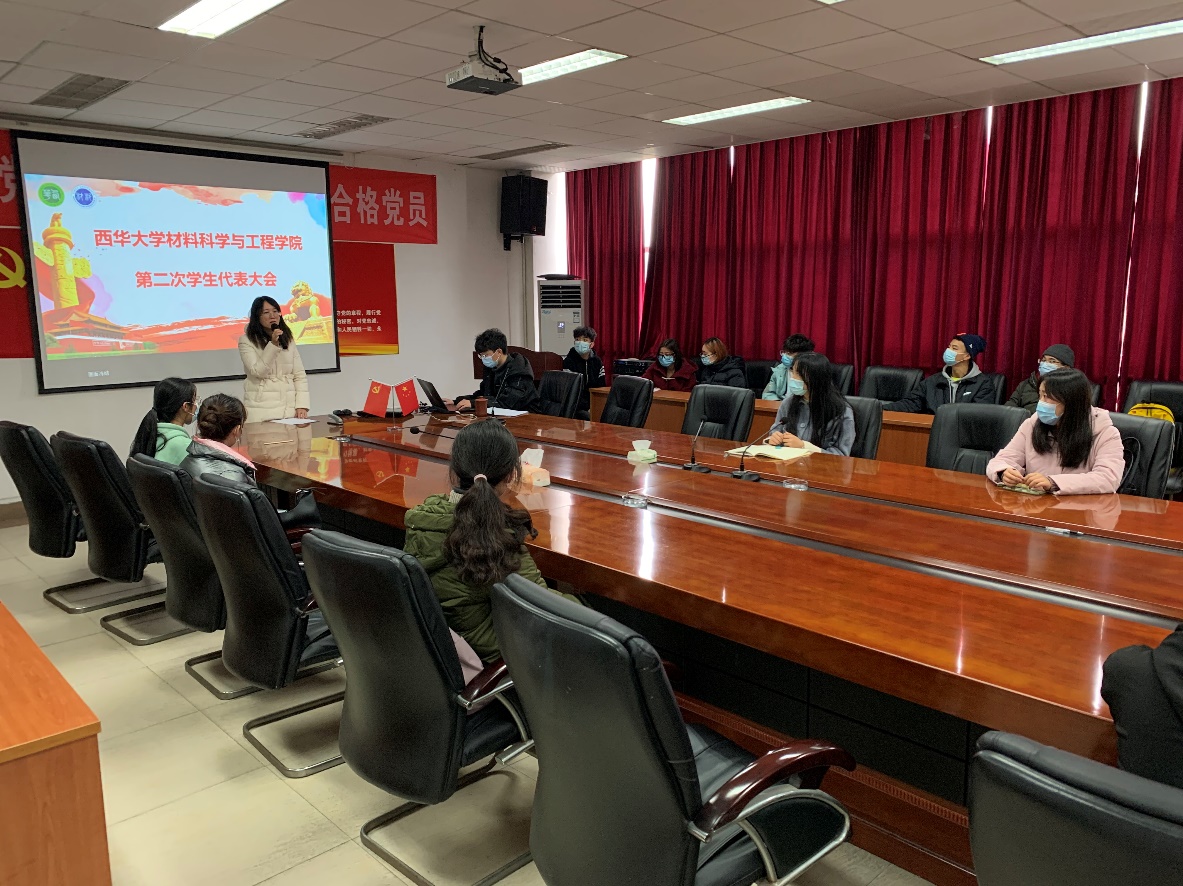 2020年12月4日中午12:20,betway88西汉姆联材料科学与工程学院第二次学生代表大会于5A-427准时召开。团委书记王霞主持了本次会议。