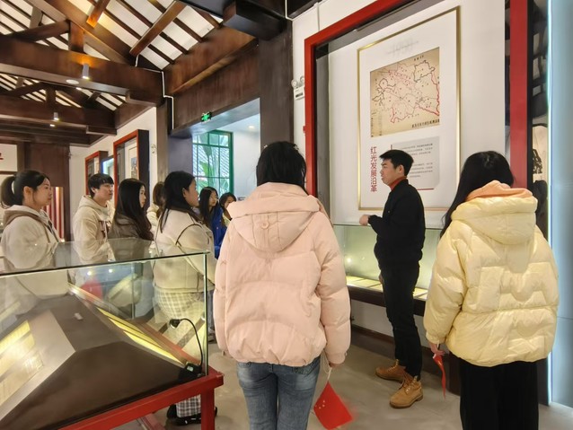 2025年3月1日,材料科学与工程学院成型系本科生第一党支部在郫都区红光街道“毛主席视察红光纪念馆”举办了一场别开生面的主题党日活动。此次活动以“追寻红色记忆,挺膺时代担当”为主题,旨在通过实地参观学习,强化党员的身份意识和责任意识,同时增进组织凝聚力和战斗力,促进学生党员的身心健康,发挥模范带头作用。