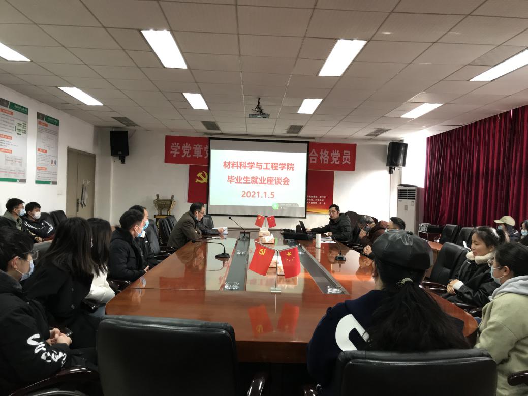 1月5日,材料科学与工程学院在5A-427会议室召开了2021届毕业生就业座谈会,由分管就业工作的马洪波书记主持会议,学院领导、毕业生辅导员及部分在校学生参加了座谈会。