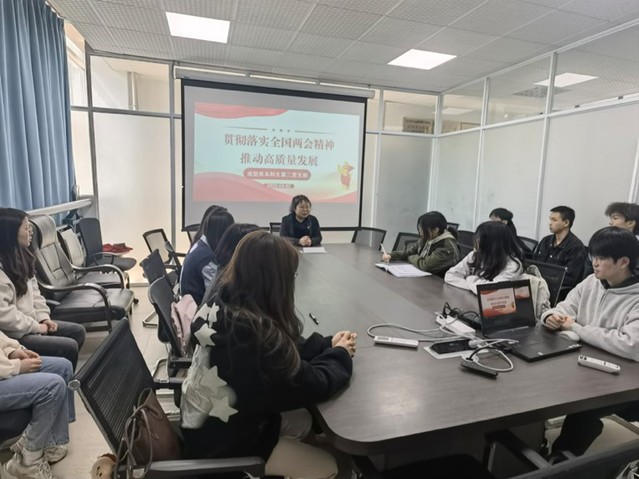 首先,党支部书记饶丽带领全体党员系统学习2025全国两会精神,重点解读政府工作报告中关于科技创新、教育改革、民生保障等与学科发展密切相关的内容,着重强调了务实精神、系统施策、民生为本、开放共赢等关键要素,指出这些不仅是两会精神的重要组成部分,也为推动高质量发展提供了根本遵循。