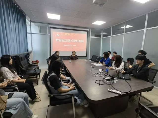 首先,党支部书记饶丽带领全体党员系统学习教育强国建设规划纲要核心内容,重点解读战略意义与阶段目标,着重强调了教育作为民族复兴基石的关键作用,指出人才支撑、科技助力、文化传承是教育强国建设的三大支柱,也为实现2035年全面建成教育强国的远景目标指明了实践路径。