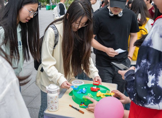 活动以自我认知、情绪管理、人际交往及释放压力为核心,设置了脑力挑战、艺术疗愈、快乐解压三种类型。脑力挑战类游戏包含心理知识、党史校情、趣味公考问答,艺术疗愈类包含制作干花书签、情绪垃圾桶、阳光心愿墙,快乐解压类包含拯救企鹅、青蛙吃豆、德国“心脏病”、欢乐投壶,共10个游戏打卡点位,同学们在活动入口处领取积分表即可参与。在所有点位完成打卡获取积分后,可凭积分兑换相应奖品。