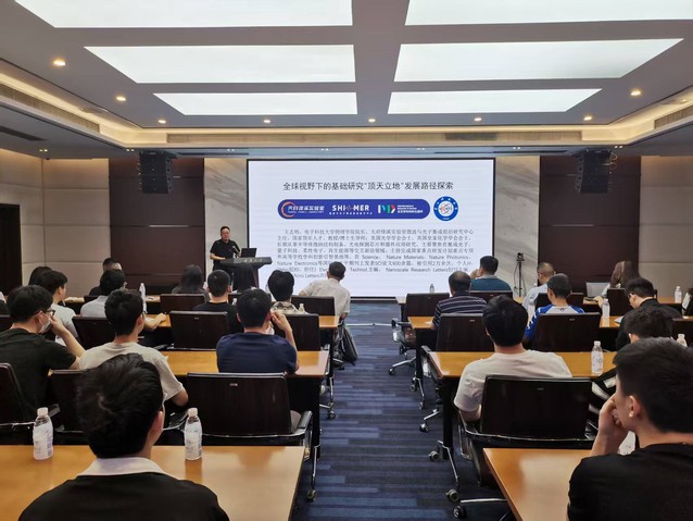 报告会上,王志明教授向与会师生分享了自己的个人履历和科研情况。他说到,自2011年加盟电子科技大学微电子与固体电子学院以来,他便以构建跨国创新网络为战略支点,在低维光电材料与器件研究上取得了范式突破。他强调,基础研究要有国际视野,科研要国际化。基于此,他创新提出“学科交叉-国际协同-人才迭代”三维驱动模式,成功实现了基础研究勇攀学科前沿“顶天”和紧密围绕国家战略“立地”的有机统一。他进一步说到,在2014-2024年担任基础与前沿研究院创院院长期间,他致力于打造国际化人才特区,构建跨大洲科研协同网络,最终形成示范效应。2025 年出任物理学院院长后,他积极实施“基础研究强基工程”,将国际前沿攻关与国家重大需求深度关联,探索出具有电子信息特色的物理交叉研究发展新模式。
