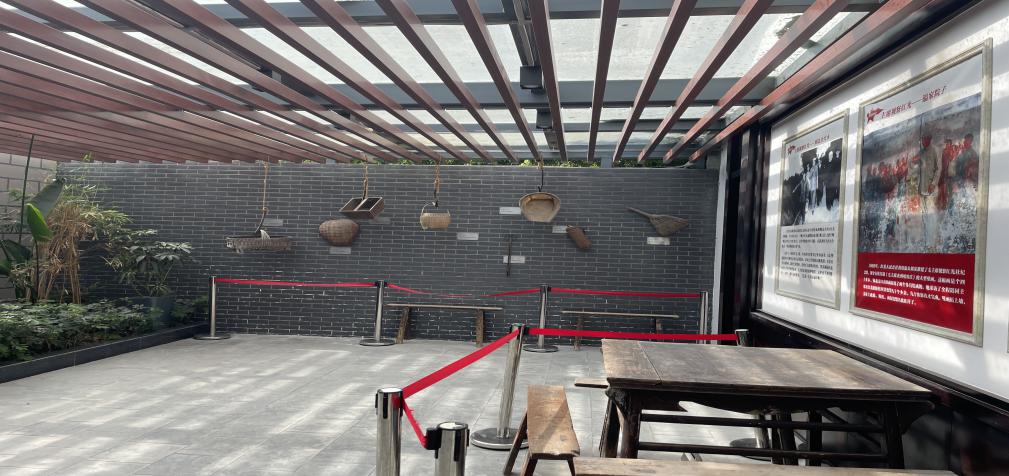 大家怀着崇敬的心情走进了纪念馆,在纪念展厅正中央,塑立着一尊毛主席铜像,“为人民服务”五个大字金光闪闪。展厅里收藏着毛主席视察红光的历史图片,谈话稿件的影印件,后院陈列着20世纪50年代川西坝子农家人的生产、生活用具等历史实物,生动展现了当时劳动人民的生活场景。