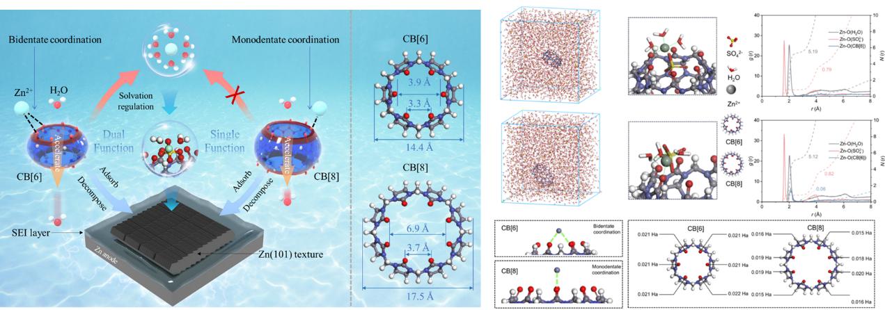通过添加螯合剂、络合剂及其他具有与锌离子配位能力的添加剂,实现对锌离子溶剂化结构的调控与优化,并基于第一性原理模拟计算优化前后的溶剂化环境,进行验证,实现对电解液稳定性的提高,锌离子去溶剂化过程的调控,以及引导锌离子的均匀性沉积,抑制副反应与枝晶生长。