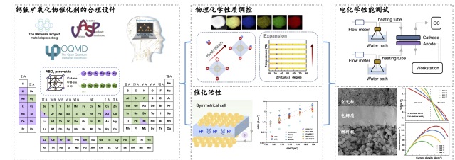 本方向致力于钙钛矿型氧化物在空气极中的氧还原与氧析出双功能催化活性调控。基于计算科学与实验,合理设计催化剂,精准调控氧化物组分与微观结构,结合多种表征手段揭示质子/氧离子/电子转移过程,为固体氧化物电池提供高活性、高稳定性新型空气极,助力可再生能源电-氢转换技术的发展。