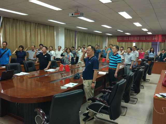 我志愿加入中国共产党,拥护党的纲领,遵守党的章程……”面对神圣的党旗,党员同志们再次郑重地举起右手,6月29日在领誓人汤子琼同志带领下重温入党誓词,整个会场严肃而不失隆重。这是纪念中国共产党建党96周年在材料学院开展“重温入党誓词、坚定理想信念”主题党日活动,学院领导班子、党委中心组成员、各教工党支部书记和全体教师党员共计60余人参加了此次活动。