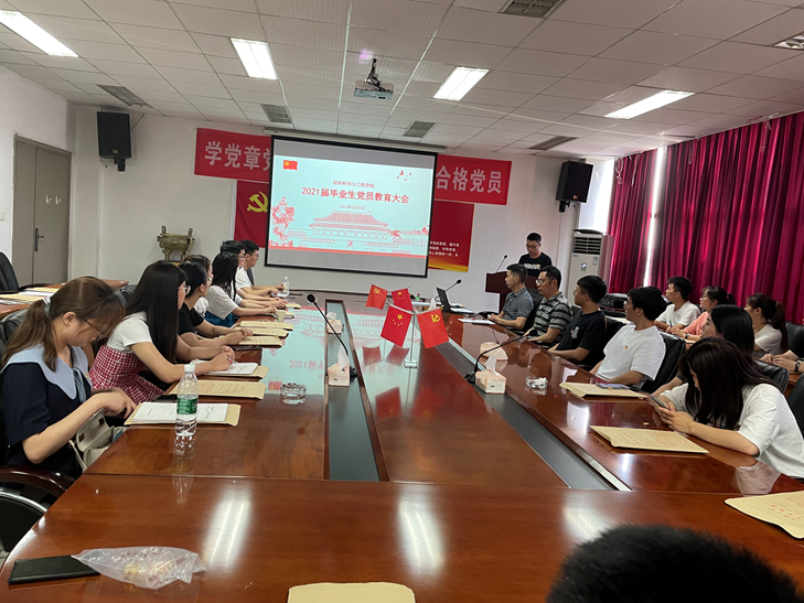 为做好我院2021届毕业生党员离校前的有关工作,加强对我院毕业生党员的教育、管理和服务,进一步提高毕业生党员党性意识和组织观念,6月22日上午,我院2021届毕业生党员教育大会在5A427召开。学院党委副书记兼副院长马洪波、学生党总支书记罗小青及学院全体毕业生党员参加了大会,大会由学生党支部书记张喆主持。
