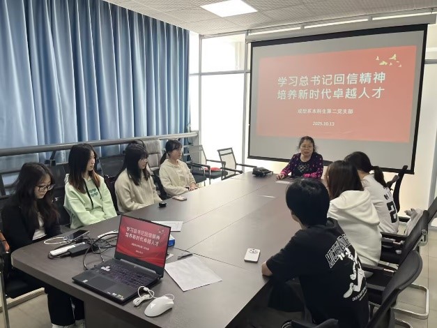 首先,党支部书记饶丽带领全体党员回顾习近平总书记给高校师生回信的背景与重要意义。她指出,回信体现了党中央习近平总书记对高等教育和青年人才培养的高度重视,为新时代高校改革发展指明了方向。全体党员要深刻领会回信精神,自觉将个人成长融入国家发展大局。