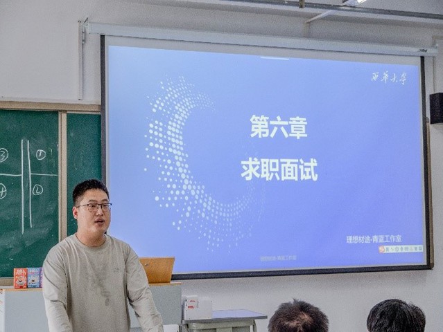 材料学院袁国才老师帮助同学们了解当前的就业形势和各大公司的面试要求。除此之外袁国才老师针对学生们的前途规划也提出了建议。