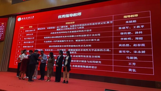 据悉,第五届四川省大学生材料设计大赛是经四川省教育厅正式批准的2025年省级大学生竞赛项目,该赛事覆盖川渝地区多所高校,2025年吸引四川大学、重庆大学等24所高校的300余名师生参与,参赛规模创历史新高。作品涵盖能源材料、环境材料、高分子材料等领域,聚焦材料创新设计与产业应用结合,旨在推动材料设计领域创新人才培养与产学研融合。该赛事全面提升了我校材料科学及相关专业学生的实践与创新能力,促进了理论与实践紧密结合,培养团队合作等多方面综合能力。