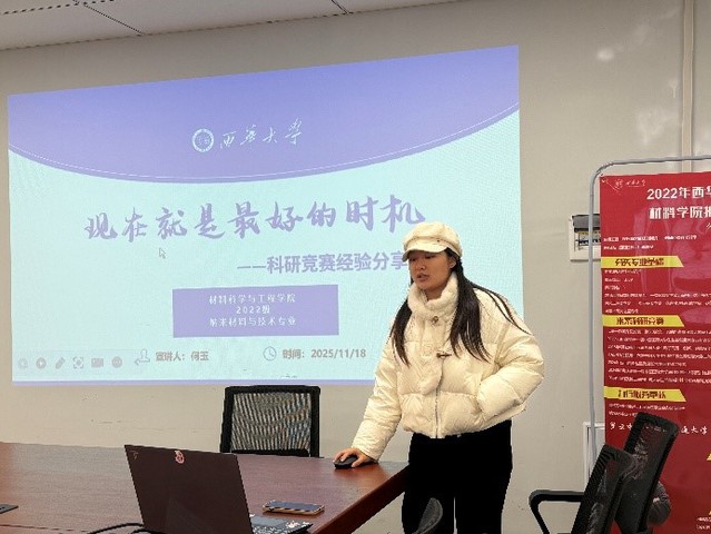 11月18日中午,由材料学院“理想材途”——青蓝职业生涯规划工作室举办的面对面经验分享会在宜宾校区2D507会议室成功举行。来自2022级纳米材料与技术专业的何玉同学在betway88西汉姆联宜宾校区开展了一场以 “现在就是最好的时机——科研竞赛经验分享” 为主题的宣讲。