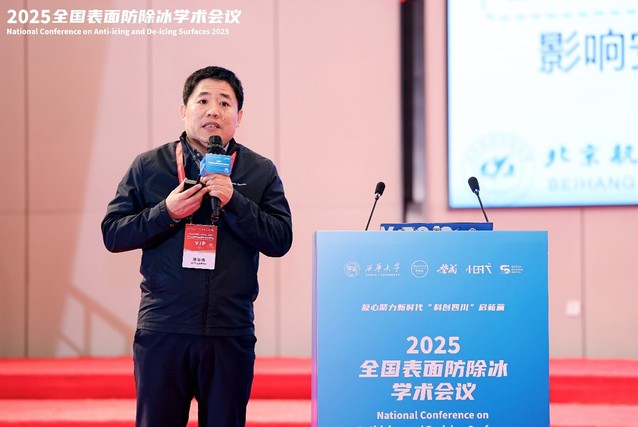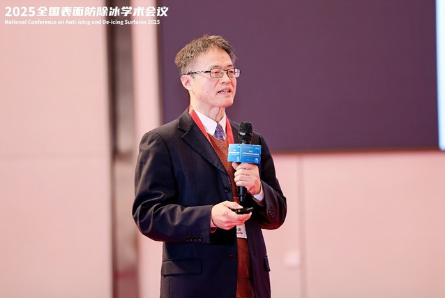 大会报告分为上下两个半场,分别由叶军教授和袁艳平教授主持。来自清华大学、中国民用航空飞行学院、湖北大学、北京航空航天大学及英国诺桑比亚大学的五位知名学者先后作主旨报告。清华大学姚学峰教授围绕“大型民机增升装置结冰增量载荷实验及分析”分享了其在航空结冰机理与实验方法方面的最新研究;中国民用航空飞行学院何强教授以“飞行器超疏水表面防除冰研究”为题,探讨了超疏水材料在航空防冰中的应用前景与技术挑战;湖北大学郭志光教授从“防冰除冰表面中的表面张力”切入,阐释了表面物理化学在防冰设计中的关键作用;北京航空航天大学陈华伟教授系统介绍了“航空用低热节能防冰涂层技术研究现状与趋势”;英国诺桑比亚大学傅永庆教授则聚焦于“薄膜基声表面波在防冰及除冰的应用”,展示了跨学科技术在该领域的创新潜力。五场报告内容前沿、视角多元,引发了与会者的热烈讨论与深入交流。