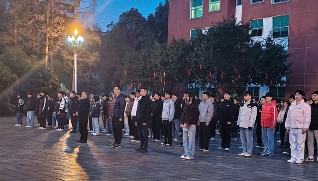 清晨7时,升旗仪式在庄严的氛围中正式开始。伴随着激昂的出旗曲,国旗护卫队迈着整齐划一的步伐护送国旗入场。在雄壮的国歌声中,鲜艳的五星红旗冉冉升起,全体师生肃立注目,高唱国歌,表达对祖国的无限热爱与崇高敬意。