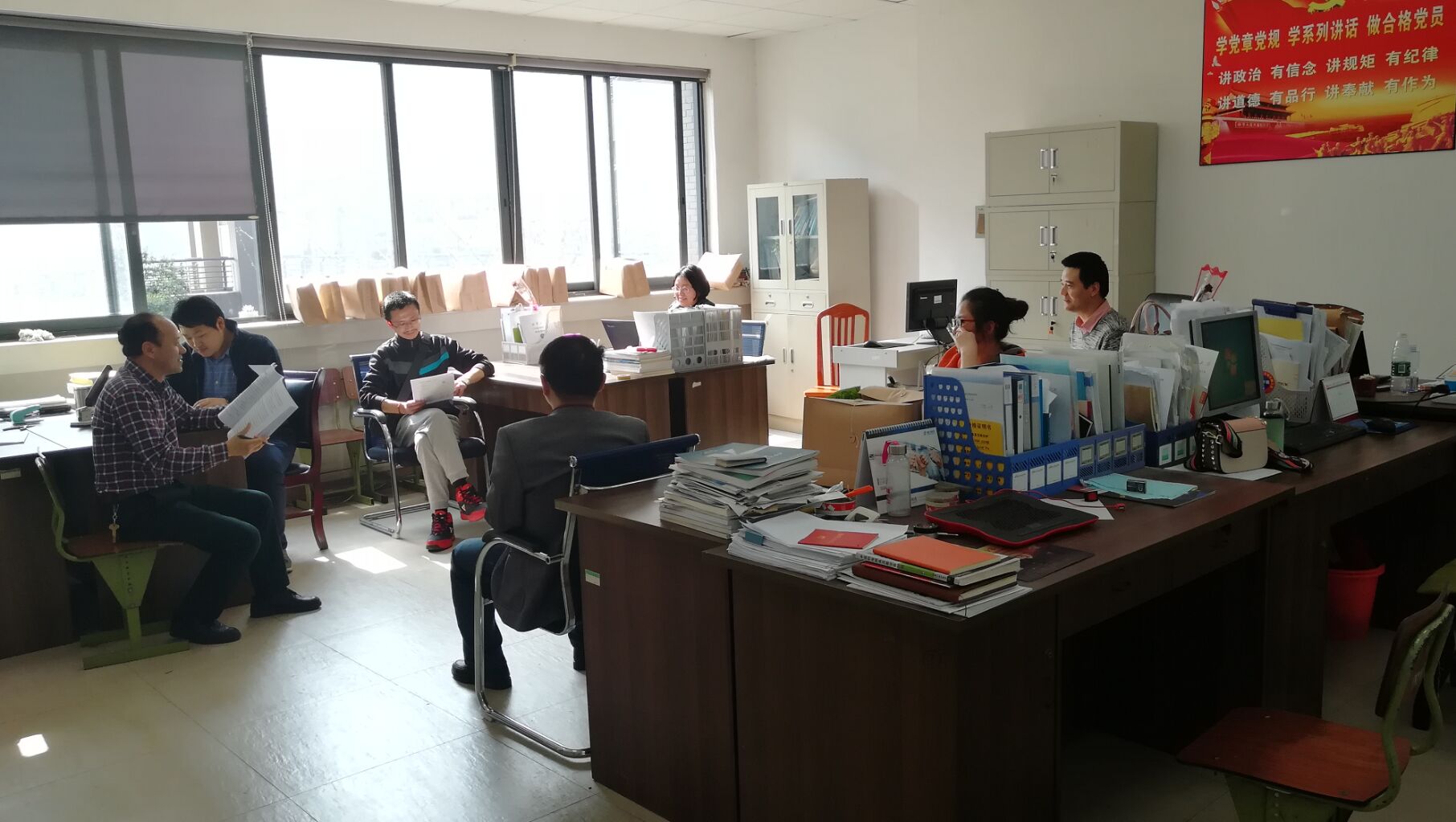 322下午材料学院实验中心党支部5A-312召开了一次专题组织生活会。会上全体教职工认真学习了十九大及十九届二中、三中全会精神,会议由党支部书记周廷栋教授主持。