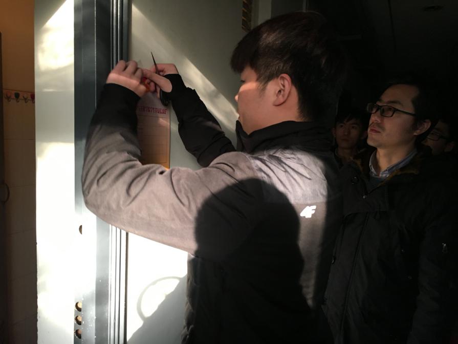 宣誓后,张书记与在会所有党员一起前往各预备党员寝室,张贴党员个人信息栏。公示党员信息,旨在起到监督党员,发挥党员做好先锋模范的作用。