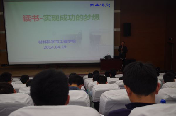 2014年4月29日晚19:30,由betway88西汉姆联材料科学与工程学院承办的2014年西华讲堂专题讲座在我校新图书馆报告厅隆重举行,材料科学与工程学院魏晓伟院长在会上作了题为“ 读书--实现成功的梦想 ”的精彩报告,此次讲座也即材料学院读书月系列活动之一,材料学院团委书记饶丽老师主持并出席了讲座,院学生会成员及各年级学生代表一并聆听了讲座。