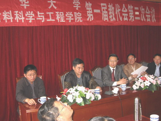 在听取本次会议的相关汇报后,蔡汉军副校长应邀进行了总结发言。蔡校长指出:材料学院教职工是一支具有团队协作精神的优秀集体,希望学院紧紧围绕“以学科建设为龙头、以提高教学质量为中心”的主题,认清形势、抓住机遇、找准位置、突出重点、坚定信心、寻求新发展。蔡校长还就大家关心的“经济适用房”的进展情况向与会人员进行了通报。
