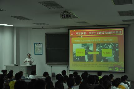 整个纪念活动由学生一支部承办,首先由一支部书记郭忠林上台讲述了从1921-2011建党90周年历程,让大家看到在党的领导下国家发生的巨变。