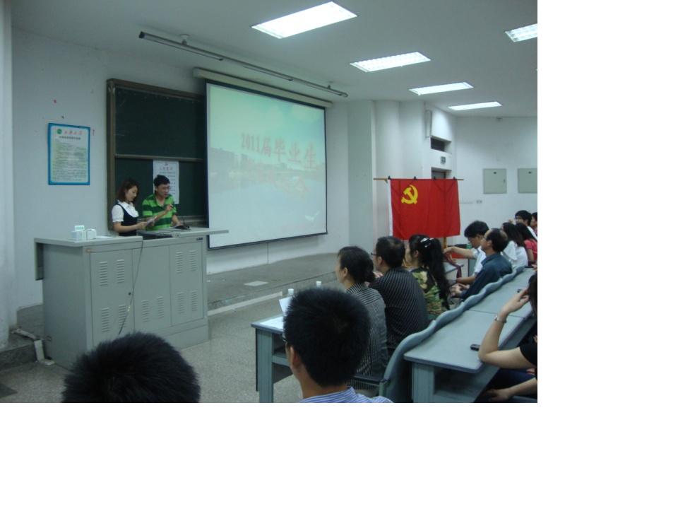 在2011届学生党员临近毕业之际,材料学院于6月26日晚在5C-104举办了一次颇具意义的毕业生党员欢送会。出席本次活动的有材料学院分党委书记魏远文、材料学院院长魏晓伟、材料学院分党委副书记谢君、学工办主任郭忠林、分团委书记饶丽、一支部学生党员代表、研究生支部学生党员代表及二支部全体党员。