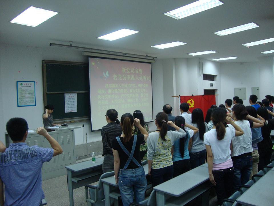 整个纪念活动由学院副书记谢君主持,在庄严的《国歌》声中开始了新党员宣誓活动。宣誓完毕之后,学院党委书记魏远文发言,他