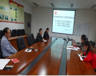 学习贯彻党的十八届五中全会精神,是当前全党全国一项重大的政治任务,对于实现“两个一百年”目标和“中国梦”,都有着十分重要的意义。会上,魏远文书记首先传达了学校党委召开的相关会议精神:魏书记对中共中央于2015年10月18日颁布实施新修订的《中国共产党廉洁自律准则》和《中国共产党纪律处分条例》进行了解读。 魏书记强调,各支部书记应肩负起组织支部党员深入学习领会两项法规具体内容的责任,要在贯彻实施上下大功夫,绝不走形式,必须践行在实际行动上。会后,师生党员纷纷表示认真做好相关工作的宣传工作,并将十八届五中全会的相关精神和要求落实到日常工作中。