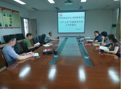 魏远文指出按照学校要求制订了《材料学院领导班子开展“三严三实”专题教育活动进度表》工作中,要求各位领导班子认真落实“三严三实”的具体内容。院长魏晓伟结合学院发展目标,提出结合当前教育工作,坚持把“三严三实”作为做人正己之基,为学校和学院发展做出贡献。
