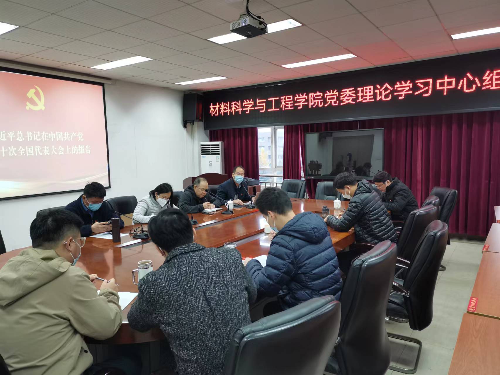 12月1日下午,材料科学与工程学院在5A427会议室召开党委理论学习中心组学习会议,集中学习了党的二十大精神,学校教务处处长蒋珍菊、电气与电子信息学院党委书记周良辉参加了巡学旁听。会议由学院党委书记查康主持,学院班子成员、全体在岗党委委员、党政办主任参加了会议。