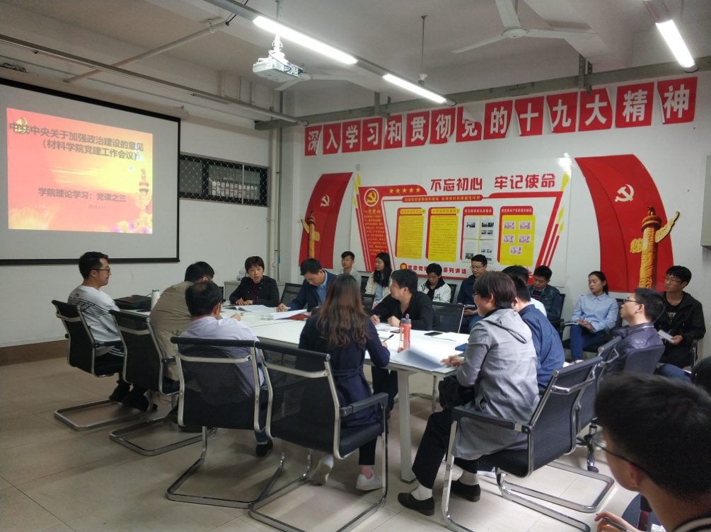 2019年4月15日下午,材料科学与工程学院在5A-302召开党建工作会议,学院的教师支部书记、学生党总支书记,支部委员,学生支部书记参加了本次会议。会议由党委副书记马洪波主持。