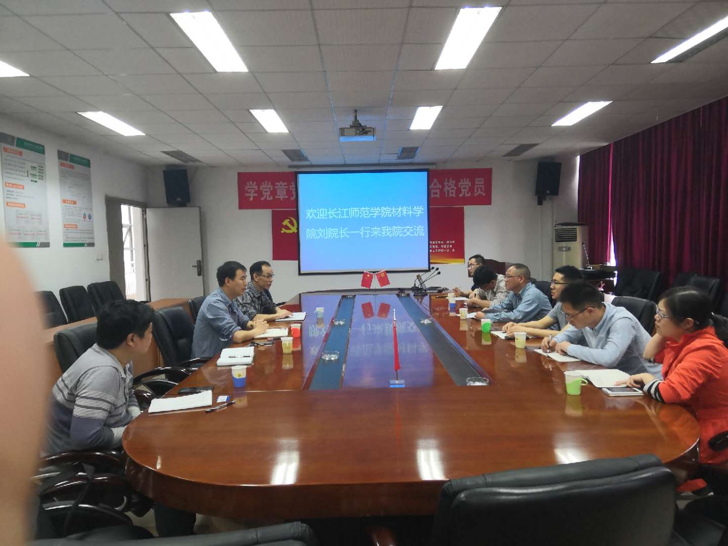 4月19日上午,长江师范学院材料科学与工程学院副院长刘松利一行来我院交流,受到我院副院长丁士华、金应荣和院长助理彭必友的热情接待,双方就材料成型及控制工程专业认证和人才培养情况等方面进行了交流和探讨。